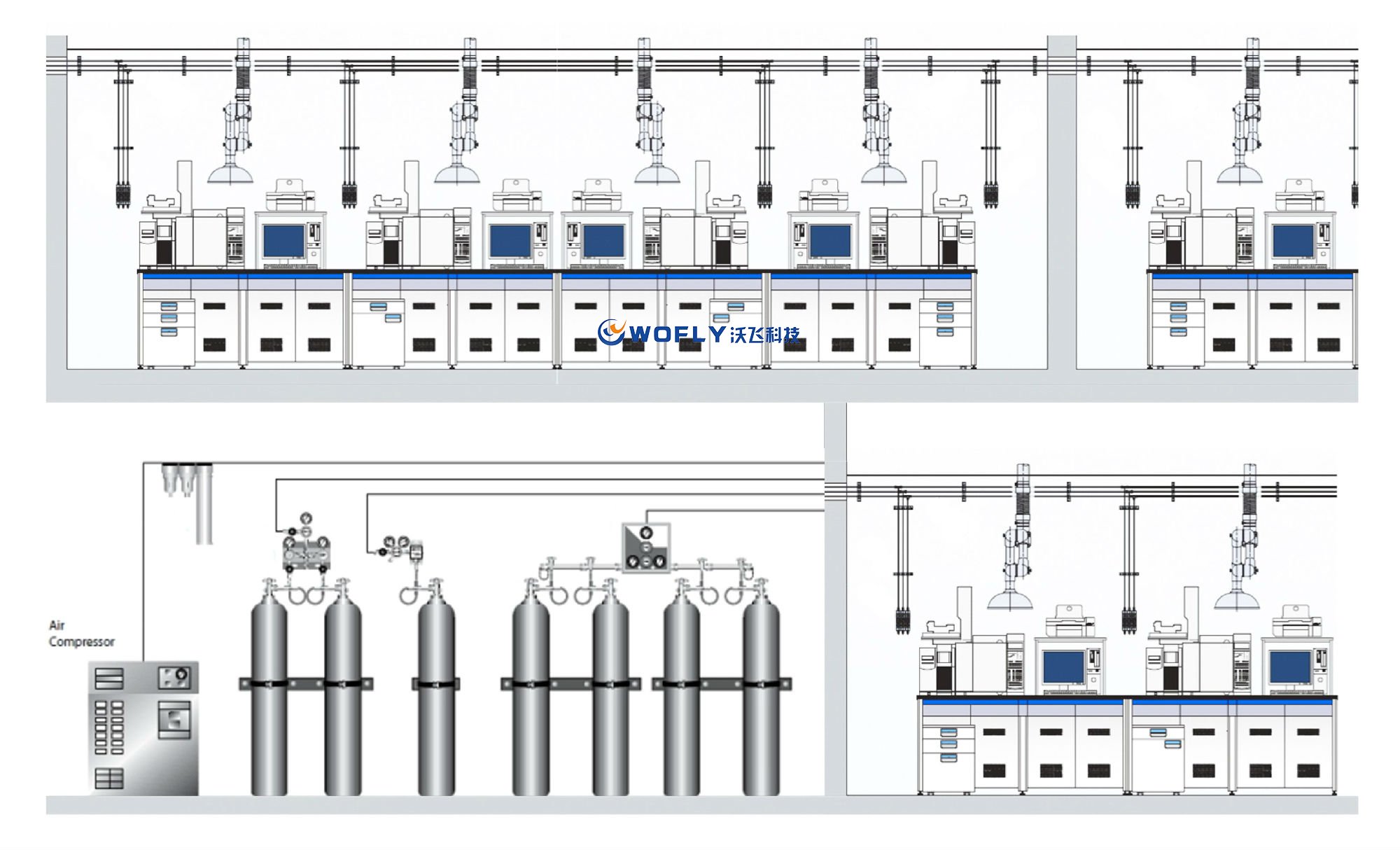 無氣瓶在實驗室內,節省空間,消除危險源。