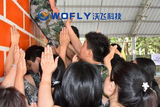 團建的壓軸項目是翻越一面4.3米高的“畢業墻”,無任何輔助道具,無任何外力幫助,只憑借單槍匹馬,是不可能爬上去的,想要過去的唯一途徑依靠于沃飛30人的團隊力量。在這個過程中,沃飛團隊就像一個大家庭,無論男生女生,都貢獻著自己的力量,搭建人梯、群力托舉,伙伴們有力的肩膀,一雙雙托舉的手,一張張憋足了勁而漲紅的臉,每個人都在借助身邊人的力量向上爬,也在拼盡全力幫助其他小伙伴登上墻頂。