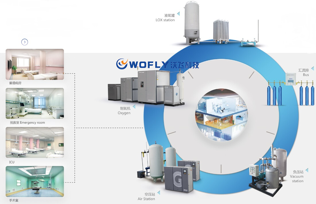 為了保證疫情期間醫(yī)用氧氣供應(yīng),沃飛科技暢通供氧“生命線”,為醫(yī)院提供從技術(shù)咨詢、整體規(guī)劃、集中供氣系統(tǒng)設(shè)計、選定設(shè)備、預(yù)制組件、項目現(xiàn)場安裝建設(shè)、整體系統(tǒng)檢測等全套工程技術(shù)服務(wù)和配套產(chǎn)品與一體的交鑰匙式服務(wù),其集中供氧系統(tǒng)配置有二級調(diào)壓系統(tǒng)和氣體管道,可以按照醫(yī)院需求為病房或?qū)嶒炇业挠脷馐褂命c輸出穩(wěn)定的氣體,通過輸氧管路,便捷地將氧氣輸送至醫(yī)院病房、急救室、觀察室和手術(shù)室等科室,優(yōu)于傳統(tǒng)鋼瓶供氧的方式,更好地解決醫(yī)療用氧的需求。例如,制氧系統(tǒng)輸送的氧氣能更好地配合呼吸機使用,滿足呼吸機的連續(xù)開機,高流量、連續(xù)不斷地供給氧氣的要求。